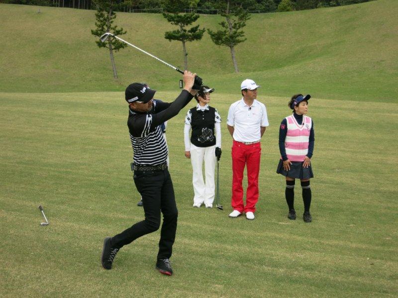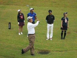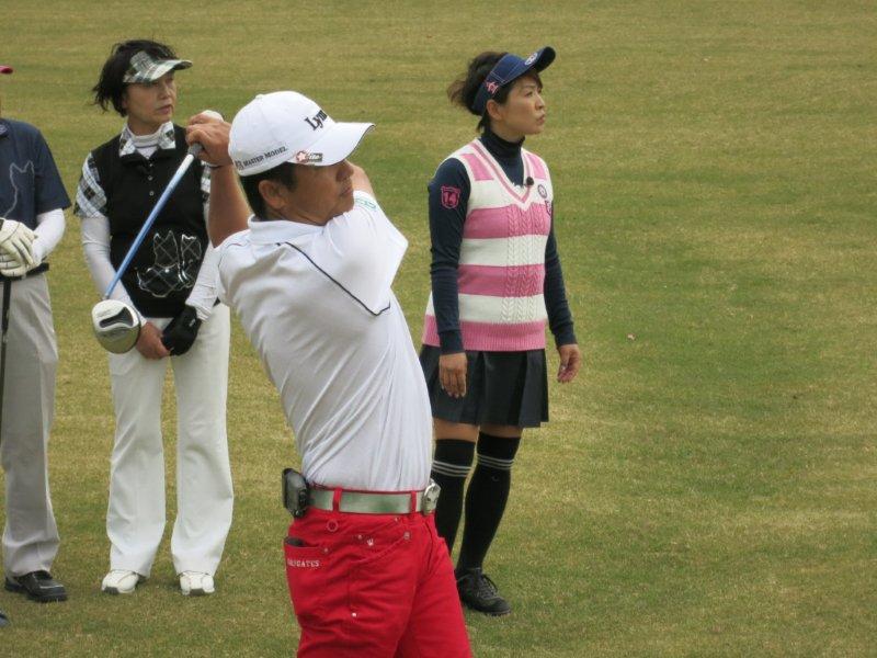 今月は、クラブアナリスト マーク金井氏が、久しぶりに登場です!! 小林プロチームには、もうすぐ80歳という藤岡達司さん マーク金井チームには、ゴルフ大好き木南ちか子さん 今月のアマチュアゲストは、ゴルフ仲間のお二人です。 さて、どちらのチームが勝つのでしょうか??? 80歳のゴルフにも注目です。 |